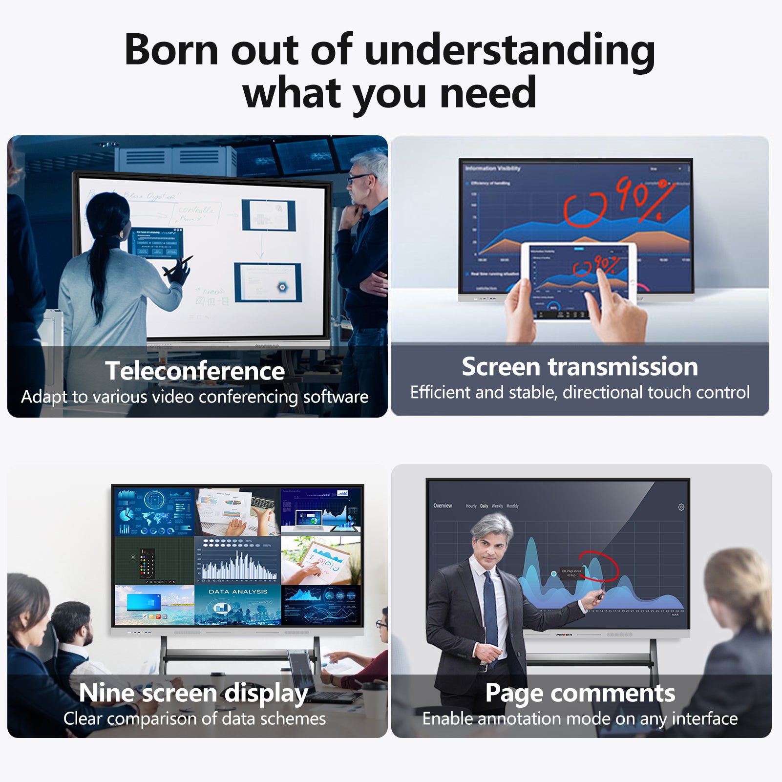 85 Inch Dual System All In One PC Multi-Touch Meeting Interactive Whiteboard Smart Board Electronic Whiteboard for School Classroom